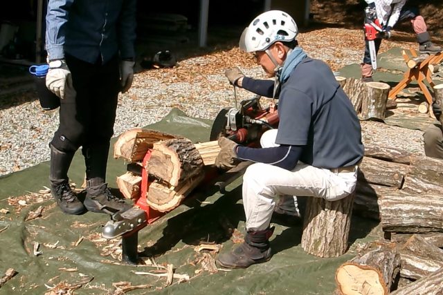 回収したコナラ、クヌギで薪を作りました 災害時の非常用燃料として使用する薪(マキ)を作りました~ 薪