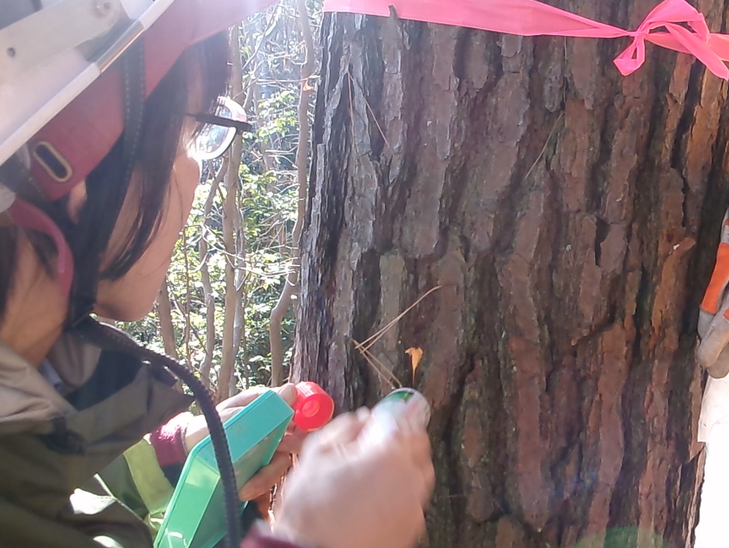 マツ枯れ予防の薬注で再び山へ