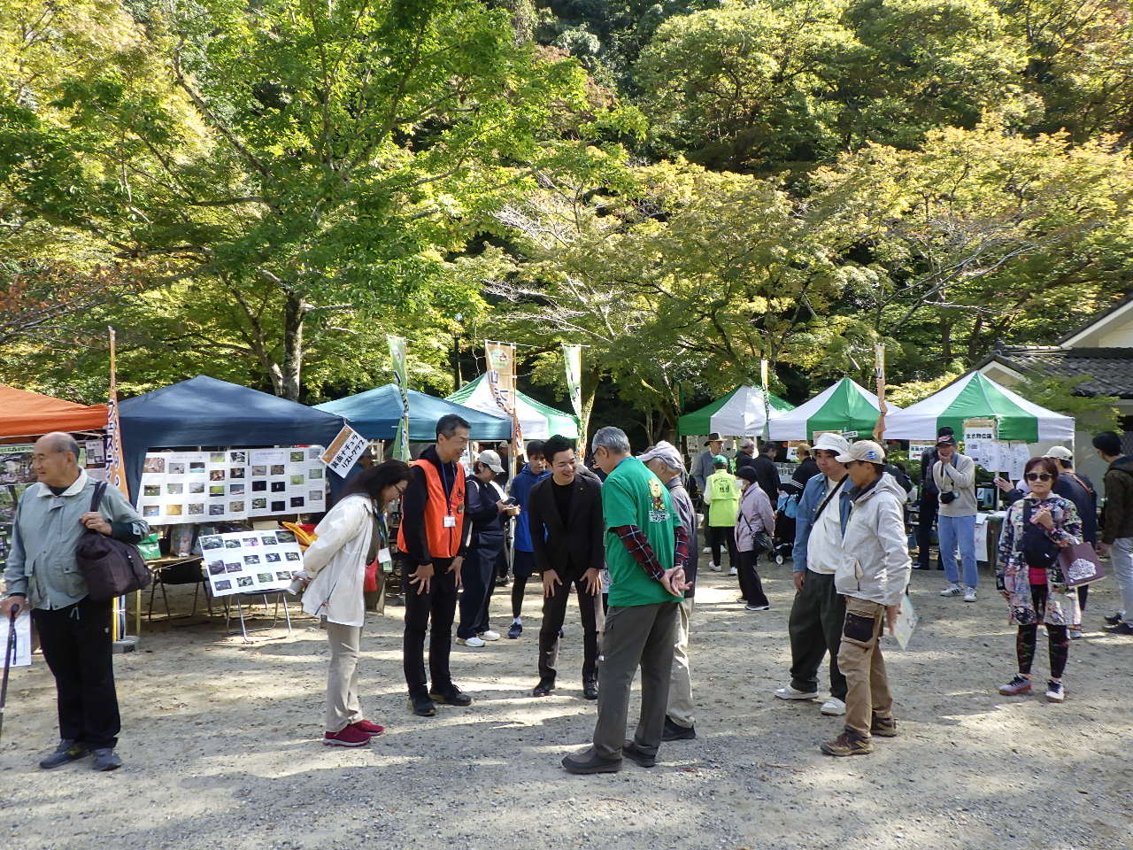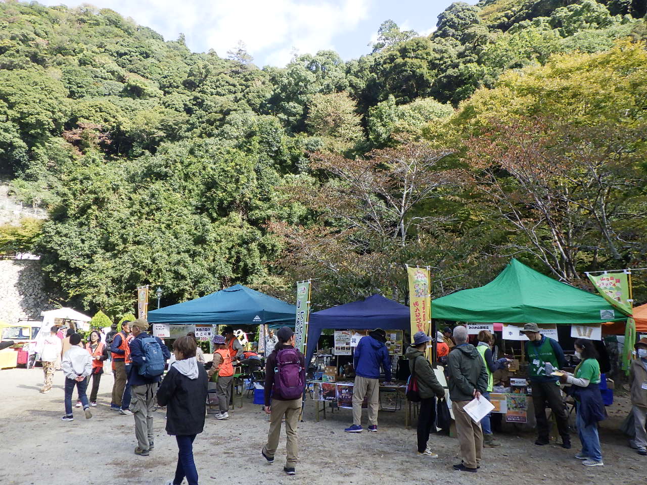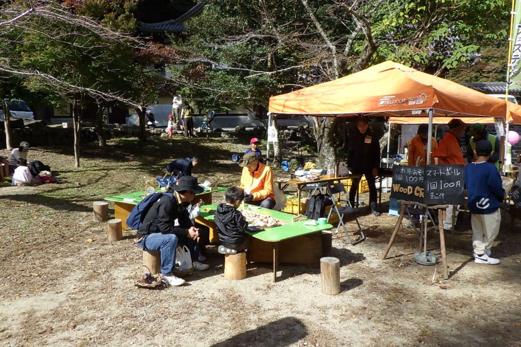 箕面「山と緑のフェステバル」参加。 2025/11/03 11月3日(月)箕面公園の滝道の龍安寺前広場で、箕面山麓保全委員会主催で「クラフト体験・音楽広場あり」自然と触れ合う場として、箕面の自然環境団体などが参加し行われました。当クラブも木端のクラフト・手作りゲームなどの体験を行い皆さんに自然を体験していただきました。